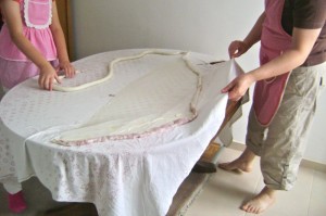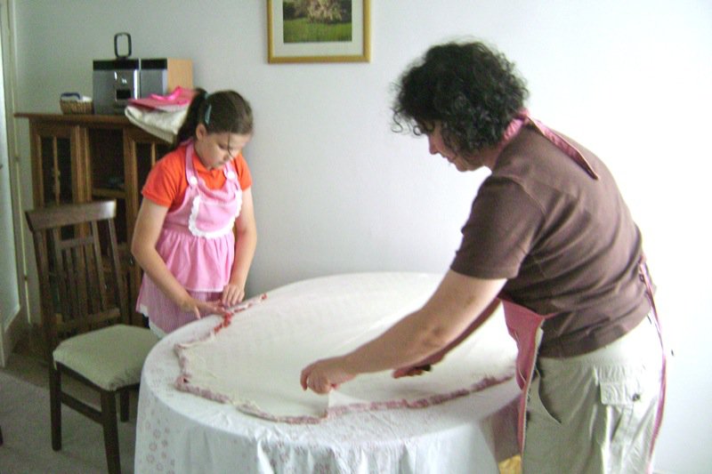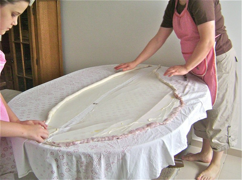 Wow, Valerie! I can’t believe how Elsada and Emina were able to get the dough so nicely across the table. So talented…