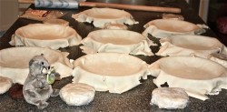 We have all of the pies filled, almost, below. Beavie is ecstatic. I have rarely seen him laughing so hard. What was so funny?