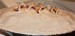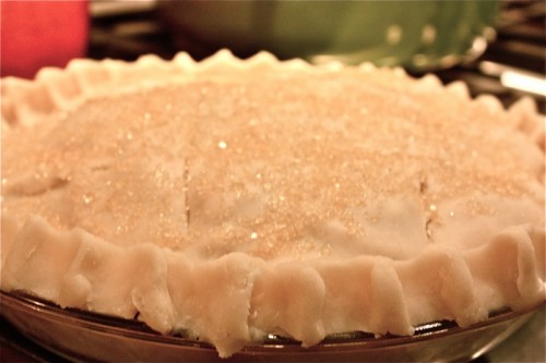 And when I baked my pie I discovered that I did put in a bit too much flour. I was nervous about the extra sugar on the bottom crust and overcompensated. Oh well, the pie wasn’t quite as gooey as usual, but still tasted delicious!