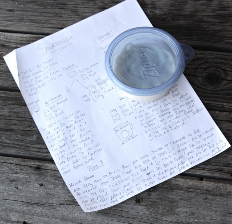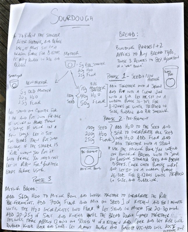 That was going to be the end of the post… but, when I stopped by Chad’s place of work, guess what I got? The recipe! And not just any old recipe, hand written, detailed and illustrated! But, that is not all! It came with a container of Adam’s mom’s sourdough starter! Can you feel the emotion? It swept through me and was ultimate gratification. I ask for the recipe, and I get so much more. I just finished a slice of this bread again today for lunch. The complexity of flavour had me grinning and humming all alone at the table, kicking my feet back and forth under my chair, and truly savouring the goodness in this bread and in my day.