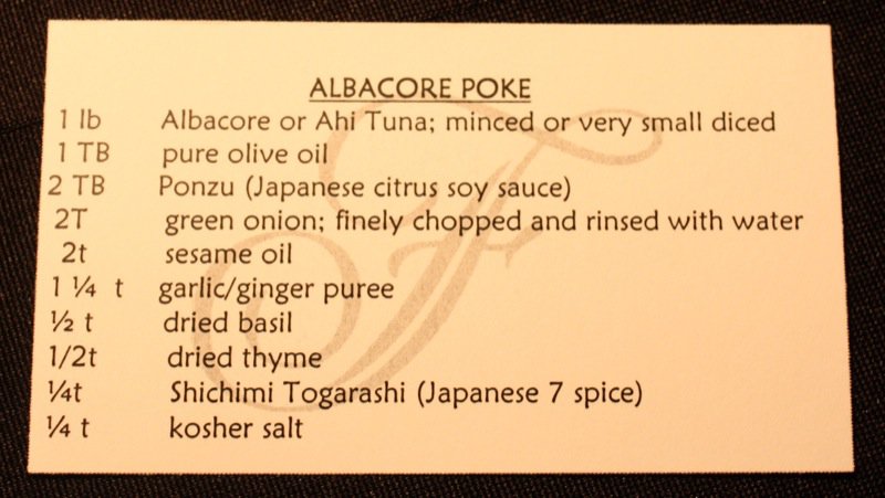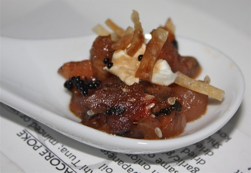 - Tuna Poke with Crème Fraiche, and Sevruga caviar