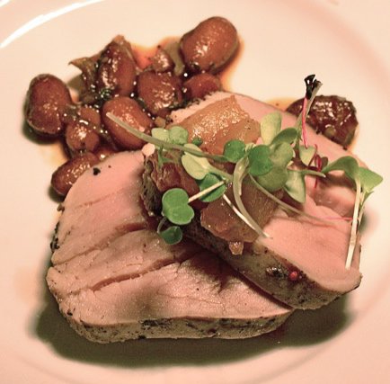- Carved Pork Tenderloin with a Pinto Bean Cassoulet and a Red and a Green Apple Chutney