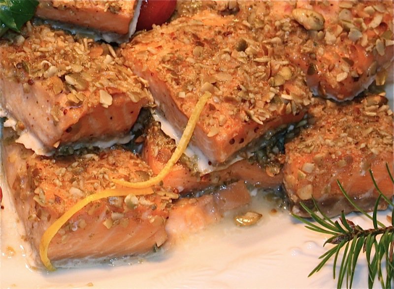 - Toasted Sunflower Seed Crusted Salmon with Yogurt Drizzle