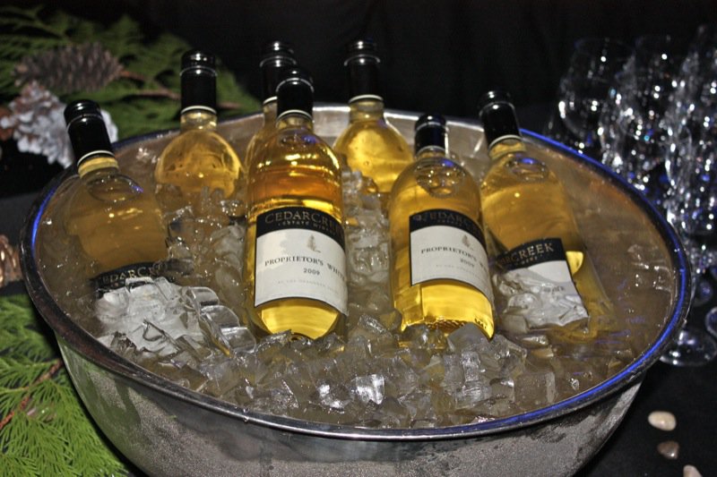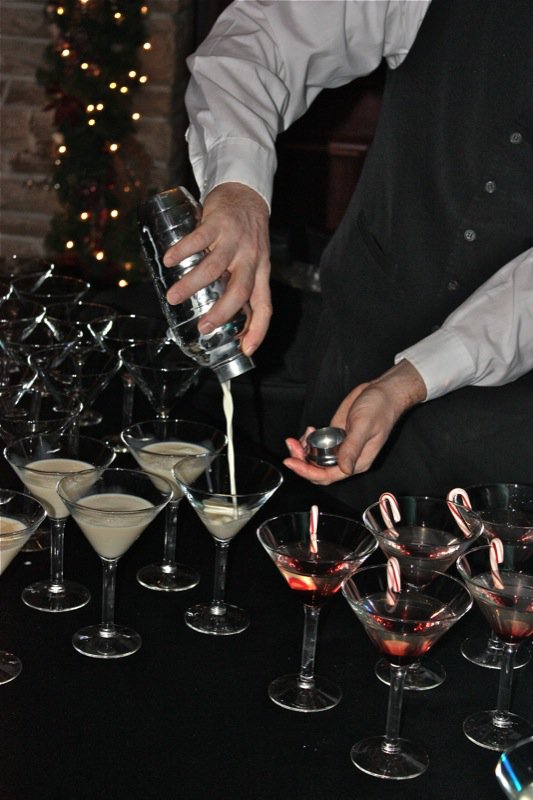 Three martinis were offered: the Candy Cane, the Eggnog, and the Energizer. Ceder Creek’s lovely red and white wines were available at all dinners and receptions, varying kinds at each.