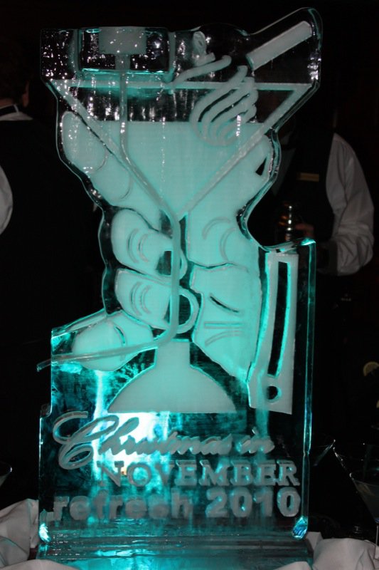 Sometimes, or if you asked, your martini was poured into the top of this lit display and came out the top of the little finger. Look closely. Such fun! The atmosphere was teaming with festivity!