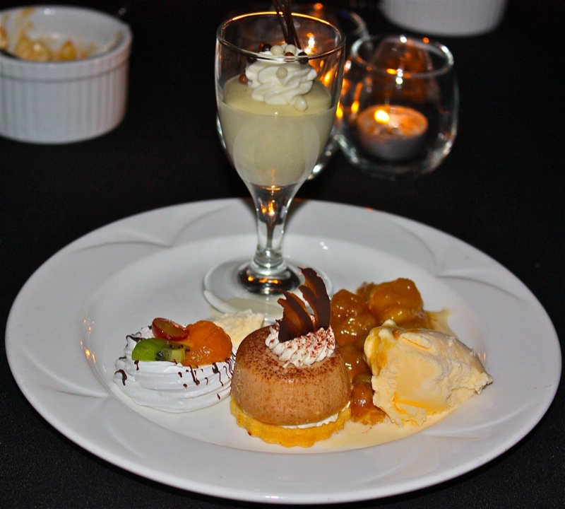 The pork tenderloin with the cassoulet and apple chutney appeared perfectly succulent, and I didn’t even taste it. I wanted to. But, I didn’t taste anything from this menu. I had my fill, but heard that this pork was butter-knife tender and the combination of flavours perfect. I am a lover of duck confit, and anything “ducky”! The smoked duck salad had a very special appeal to me with asparagus and artichoke, but there is only so much one can eat. I still regret not being able to taste this. The gal across from me was moaning with pleasure after each bite she took!