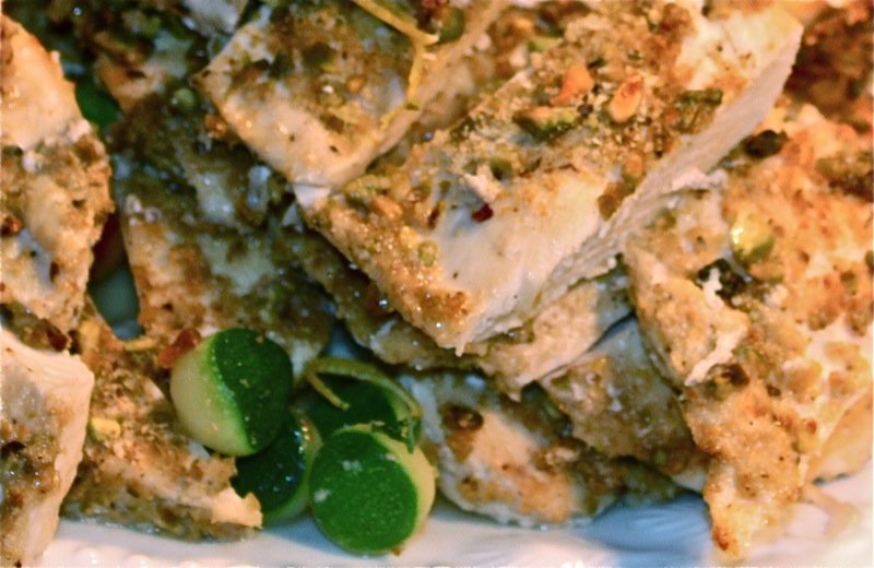 - Pistachio Crusted Free Range Chicken in a Natural Pan Reduction
