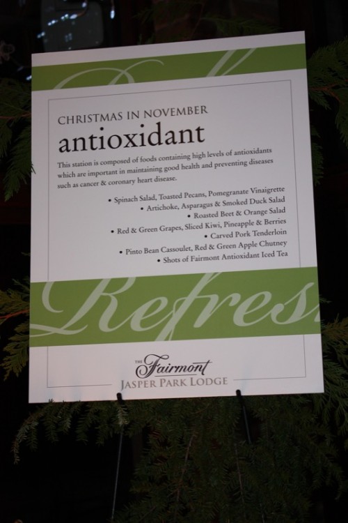 This station is composed of foods containing high levels of antioxidants which are important in maintaining good health and preventing diseases such as cancer and coronary heart disease. I am glowing! Here I am in the Rocky Mountains which is revitalizing on its own, but to then have this exceptional resort focus on my health and well being through the food presented almost found me giddy.