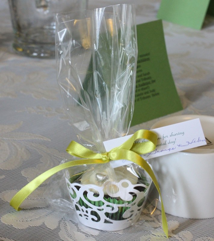 The cupcakes were fun to make. Mom and I packaged them together (recipe post to come soon) and it was during these times that we had such lovely reflective conversations. The little folded cards on the table included the program and the dessert menu which was too long to include on the meal menu card!