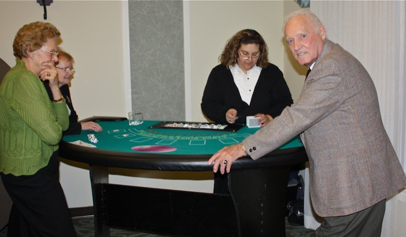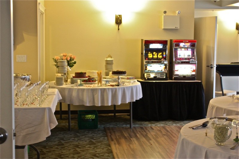 The casino was open. Judy rented a blackjack table, a roulette table, some slots and a craps table with attendants from Diamond Sound for the evening. They were absolutely excellent and it looked like fun, too. I had been to a party that had hired them in the fall prior and they are an excellent company with reasonable prices for this kind of event, me thinks.