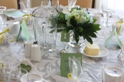 The flowers arrived. The decorating scheme was not lost on Lauren (my daughter). She had flown in from Palo Alto and was to have been married in March 2009 with this exact colour and flower idea. I told her she could still use it. It was beautiful. She just grinned…