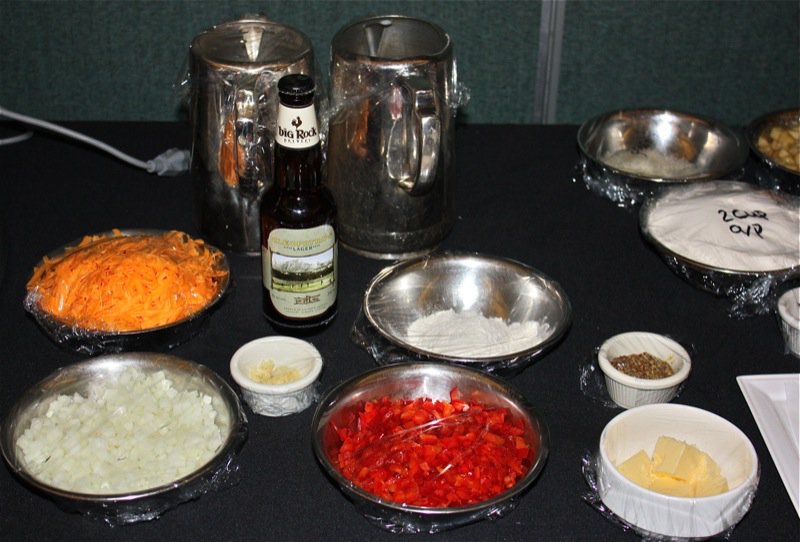 I thought I included my taste impressions… it was tasty. The little bits in it were really lovely as they were flavourful and chewy. The beer was very subtle in the soup. Truly. I was surprised by that, too.It added a depth of flavour, but was not discernible. Like salt: it makes a huge difference to the flavour in your food, but you should not taste the salt. It lacked bounce or brightness or a punch, but he said it might and that they made it to appeal to a mass audience for this session. He added that the cayenne pepper, and a garnish would definitely bump it up a notch. It is definitely a soup I will make and add my own twist to. They were very focused on encouraging you to cook according to your own palate and that this lesson was about how to cook a cheese soup. How to add the flavours that you like would be up to your palate!