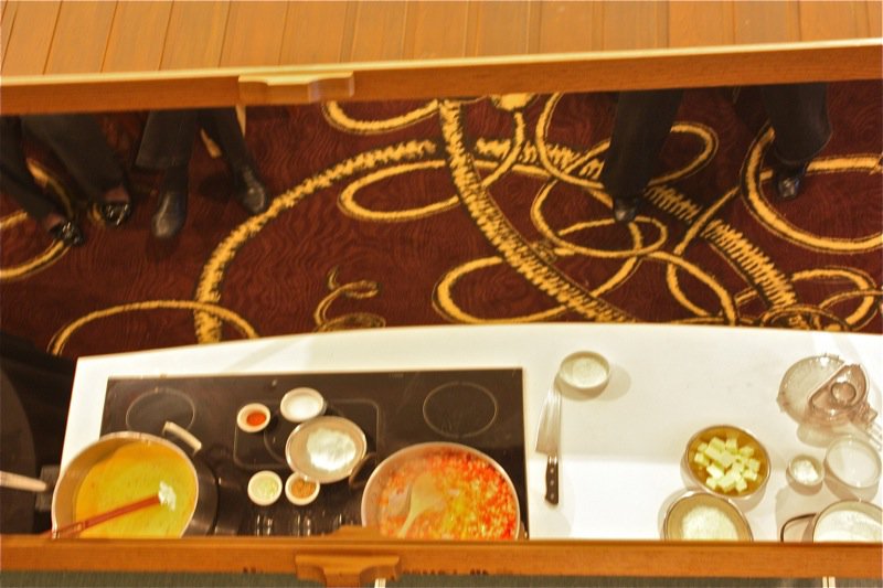 I really had no idea what we were making as it was my first day and I didn’t realize that one of the magazines I had received for free in the registration package was actually the program for the entire event, including the recipes for each session, and many of the specialties served in the dining room, as well. I did better preparations the next day!