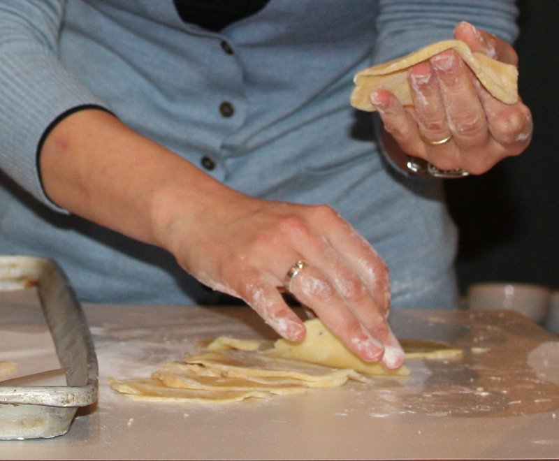 She passes around her pastry dough for all to see how flaky it was, even in dough form. Instructions and recipes for all follow at the end of this post.