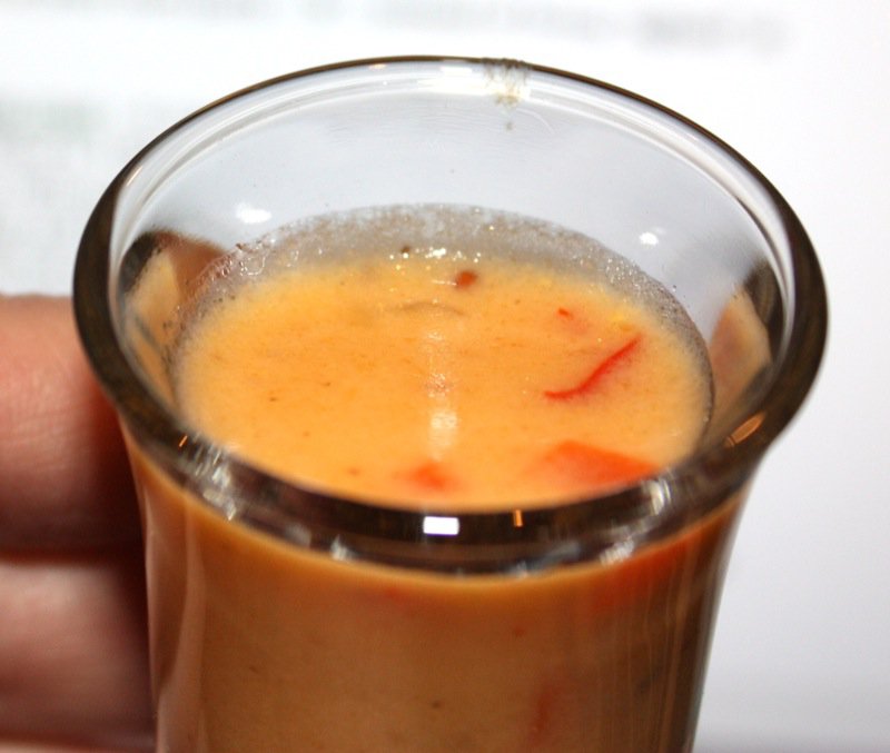 To the left, below, the Olsen’s brought the apple butter with them from Ontario, that they use. Apparently Costco has had some this season. I was going to make my own, anyway. Now I have a really good reason! Look at my soup, below, right. The little vegetable morsels gave the soup a nice texture and flavourful bits to chew. There wasn’t garnish on these shots, but any kind of garnish would only enhance this already yummy cheesy slurp. Michael said it was to be like a grilled cheese sandwich with a beer all in one glass. I didn’t catch the power of the beer, but loved the subtlety of it! I will definitely be making this soup and appreciated understanding the importance of a roux to stabilize adding cheese to a soup.