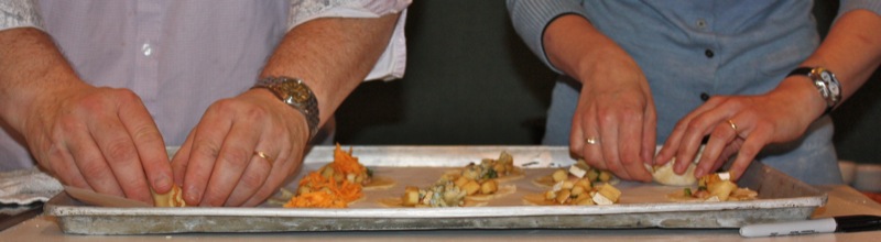 The atmosphere was very comfortable and questions were asked and answered during the session. Each session, I later learned, had a chef available to assist, and as many helpers as the numbers attending required. The soup was made in between the tart preparation and was served to each of us, steamy hot with the most cheesy fragrance!