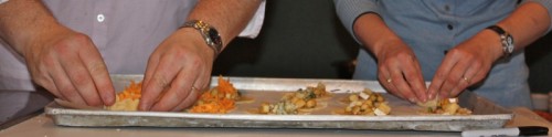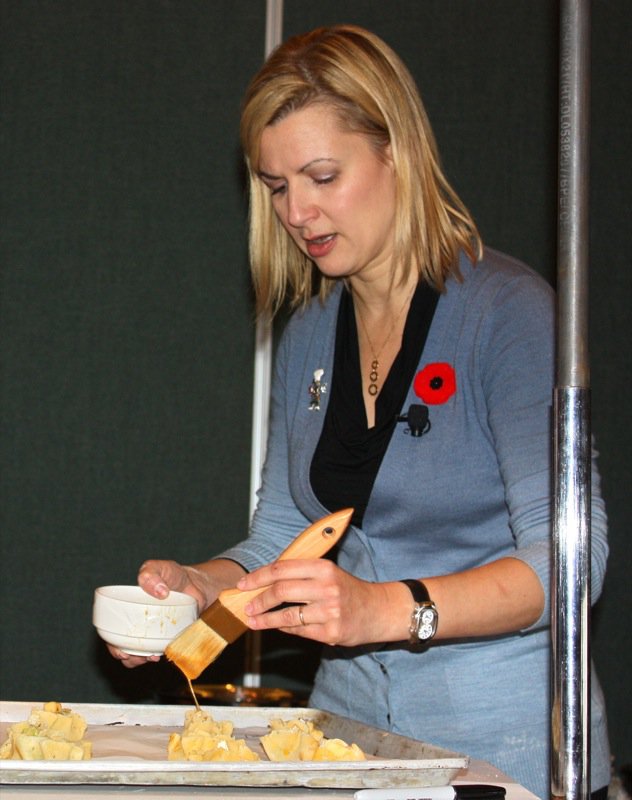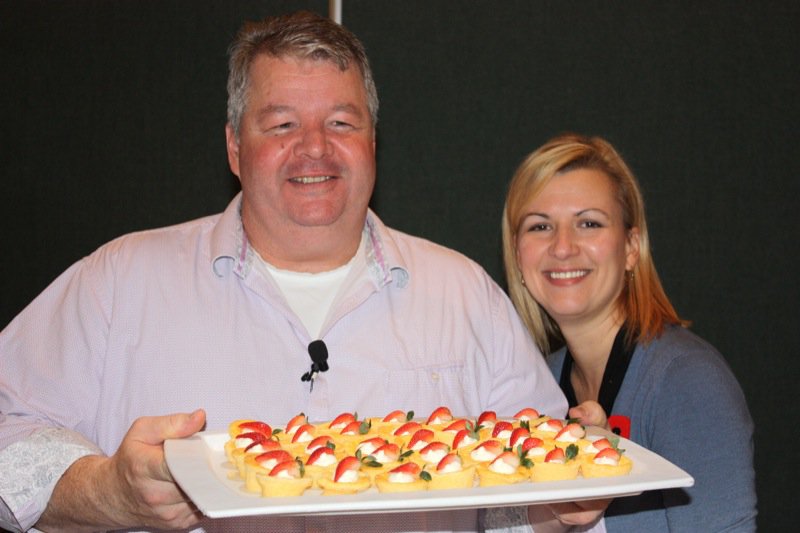 Michael and Anna were all about being guests at their own parties. Both were quite strong about the guest being the most important part of the meal. The food is expected to wow their guests, yes, particularly as they are both Chefs, but the first dish or course is the important one. Work at the “big wow” on that dish, then relax and enjoy your evening and your guests! Make the rest of the meal something that can be prepared in advance so that you have nothing more to do but heat, plate, and serve. “We try to avoid skewers and toothpicks. I don’t know about your friends, but if you have ours over for dinner, check your ferns later!…We want you to be a guest at your own party, instead of being “œaghast” at your own party!” Michael quipped with that sideways grin and endearing twinkle he has.