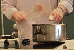 Michael stirred the cheese as Anna introduced us to Cheese. “We are using cheese as an ingredient, today, not as a primary, stand alone course. “