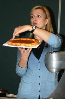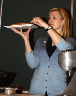 Michael poured and held up a shooter filled with milk: “This is where it all begins and ends : with your Diary Farmers! The western world has embraced dairy products as a primary food group. There is skim, 1%, 2%, 3% or homogenized ““ etc”¦. the percentage of butterfat that is in the solution contributes to the shelf life of the milk. Skim milk (or ghost milk, as Michael calls it as it is the ghost of the milk that died), is 0% and has a very short shelf life, while the shelf life of heavy cream is much longer.” I did not know that. It was new information to me! Anna is in the process of testing recipes for her new baking book and has been using about 12 to 15 pounds of butter a week! She adds that she will have a huge gluten free component in her cookbook.