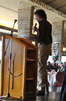 As people came in, one gal announced: there is cider just outside of the hall. No one rushed out. I did. Hot apple cider at Christmas in November? I must. Later, I learned that it was served to set the mood for the session Michael Smith was doing. Oh, well. I had some then, too! It also set the mood for this session!