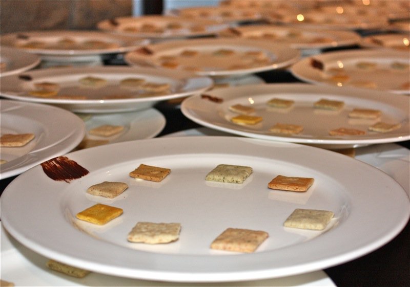 - cookies were passed out on plates and had been “glued into position” with a dab of icing sugar and water; the chocolate swipe marked the starting point, and we then tasted each in a clockwise fashion