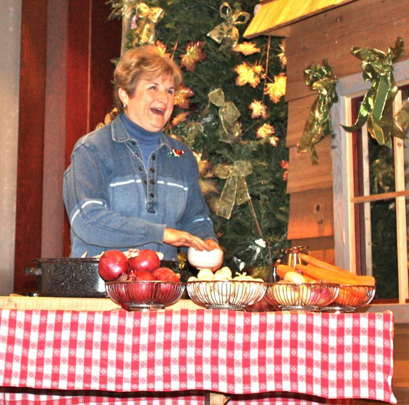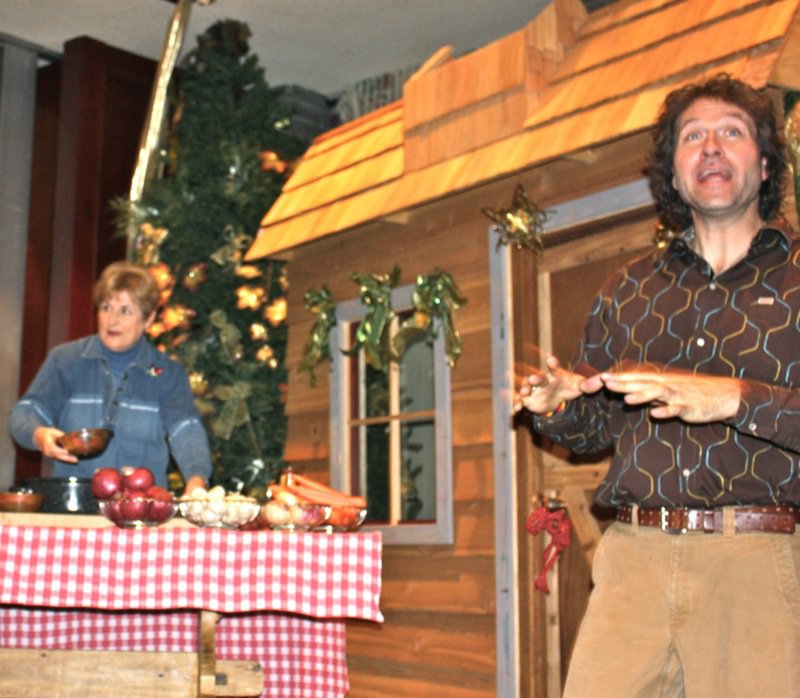 Here is the Jasper Park Lodge Food Network Set, he announced, and asked for a volunteer. I wish I saw her name. She wasn’t wearing it, but she was a hoot! No one could have done this gig better! See her dramatic entrance through the door?