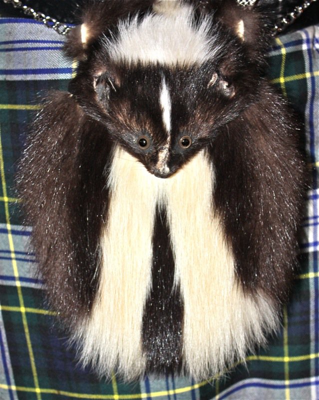 I looked it up and the skunk is a Sporran. As a kilt was traditionally manufactured without pockets for carrying such things as car keys or wallet, it is still worn with a type of pouch called a sporran, which is just the Gaelic word for pouch or purse. Sporrans are usually made from either brown or black leather; never skunk.