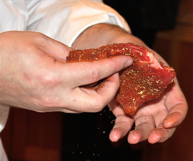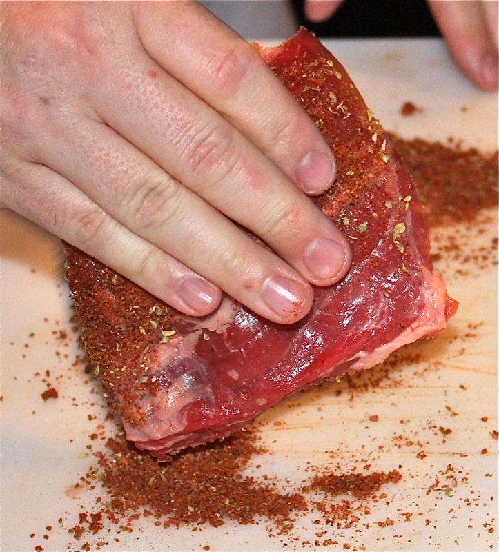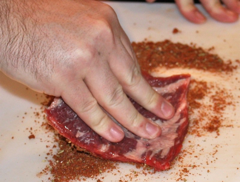 - Combine all ingredients in a bowl; sprinkle heavily on meat (rub the meat right into it as described with photos, above)