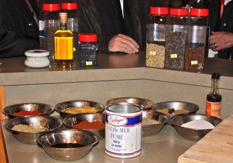 It was nice to see the Chef so confidently prepare this marinade. He had a variety of salts and peppers and herbs and spices for us to explore. I thought I had seen everything available in this part of the world, but not at all. I found this long pepper at an open air market in Aix en Provence a couple of years ago and the gal I bought it from told me it was from Indonesia. It is like a small long pine cone shape and not so peppery, but definitely a very unique flavour. I found another wonderful pepper, too, you can see later on.