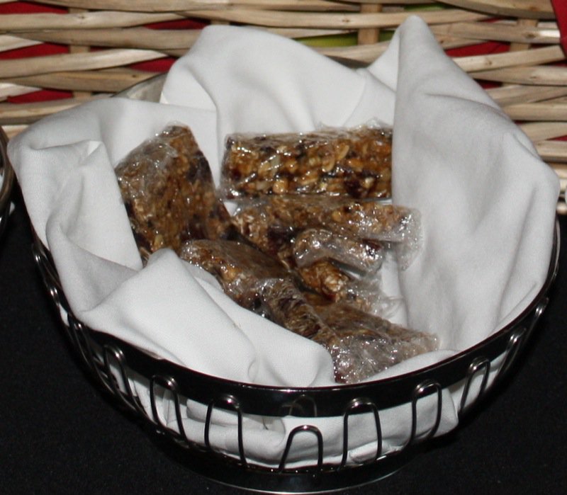 Heading out, still early, to get that front row seat, I saw the fruit and bars again beside the door to pocket in case you may be hungry later in the day. That made me smile.