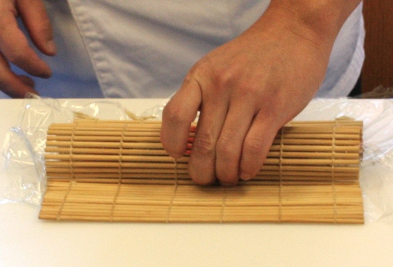 Watch this series of movements as Chef Yasukawa takes us through the shaping of the roll using the mat.