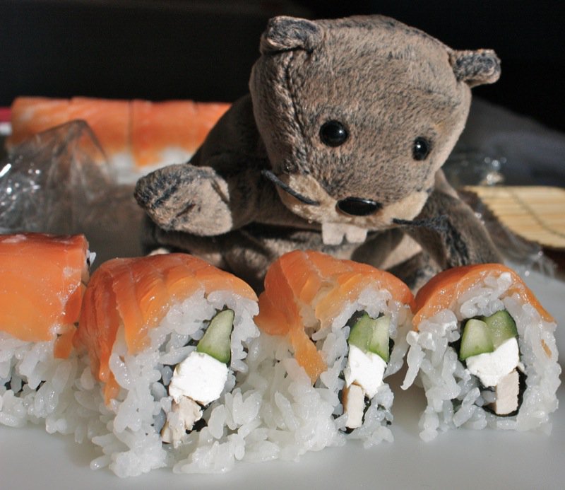 (Beavie is concerned: Sushi everywhere! Yikes! )