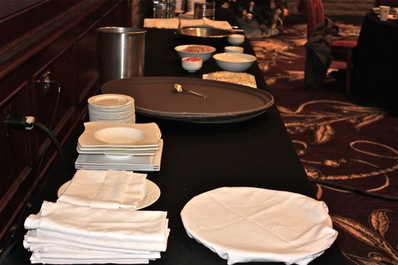 I snuck in early, as usual, after my incredible Kitchen Tour (to be posted) of JPL Kitchens and the wonderful “small” breakfast and found this set up. I chuckled as I saw her trying to nourish herself in between planning!