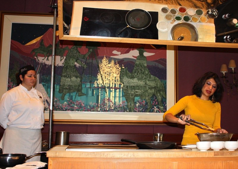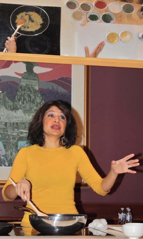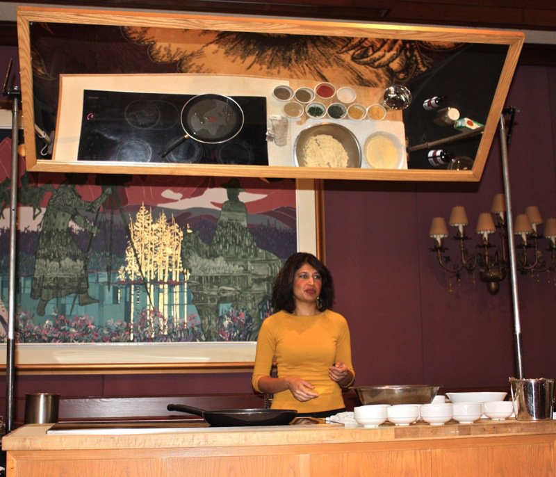 Bal Arneson is the author of Everyday Indian and apparently very famous in India and the US, she told us with a twinkle in her eye! Honestly, I had never heard of her before, and I am a Food Network Fan! She is the host of the Food Network’s recently launched “Spice Goddess” where she demystifies cooking with Indian spices and shares some of the special dishes prepared in her village. She believes that meals can be healthy and nutritious without compromising flavour!