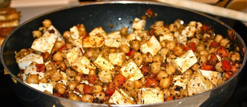 - Add the chickpeas and cook for another minute; turn the heat off and cover the pan with the lid to sit a few minutes before serving