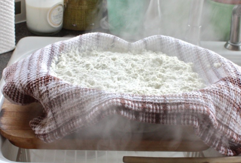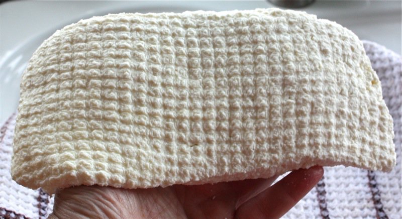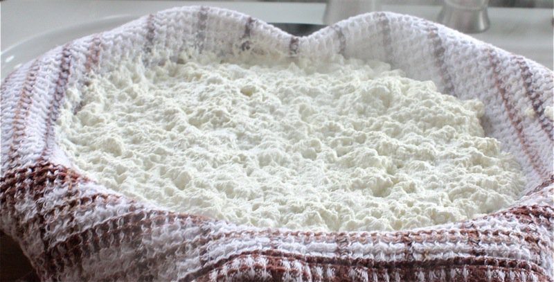 Wrap the cloth back around the curds snuggly and place something very heavy on top to press out all of the remaining whey.