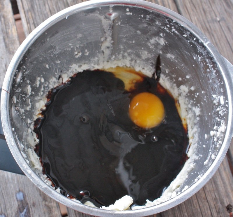 - Add molasses and egg, and continue to cream mixture