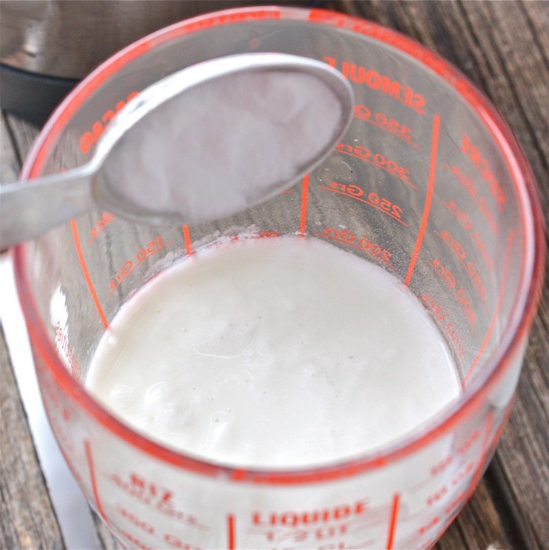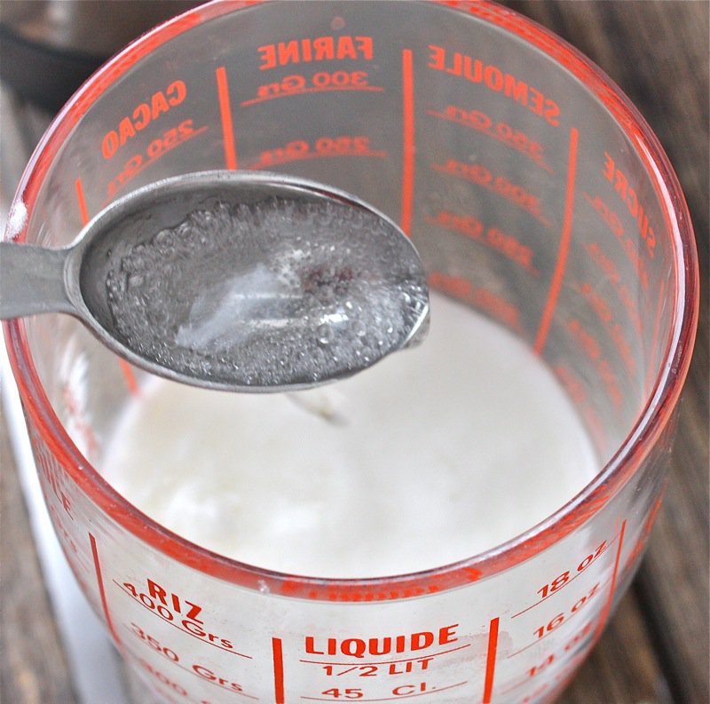 - Add two teaspoons of soda to the sour milk