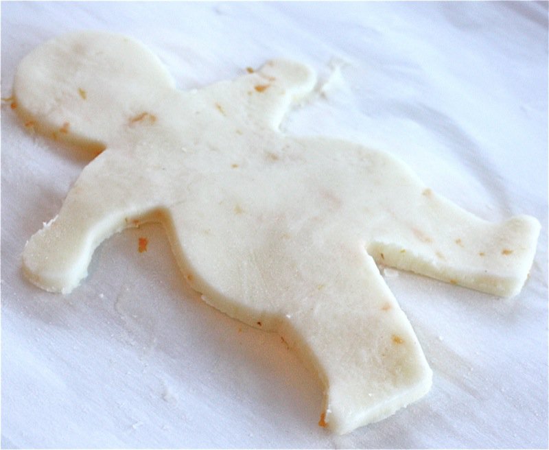 - Cut into the same shape as the cookie, lay onto the cookie (you may need to brush the cookie with a bit of sugar water for the icing to adhere (it will depend upon the temperature in the room)