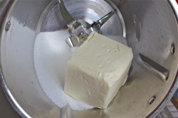 - Scale sugar and room temperature shortening into the TM bowl; insert butterfly and cream for 2 minutes at speed 3-4 (shortening must be room temperature or the butterfly may be damaged)