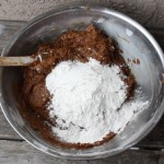 Pour the sour milk with the soda and the vinegar into the mixture and mix together.