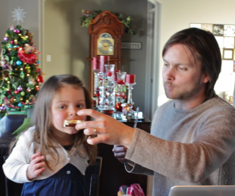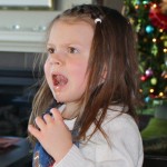 What a fun poem! Now THAT is a party I want to go to 🙂 How cute are Miss K and Miss E with those cookies (especially Miss E’s face as she tried peppermint!)? I’m glad to see that L and Gary could tag along for the fun as well! And that picture of LeeQs brandishing that knife is going to give me nightmares for a month – hee hee!