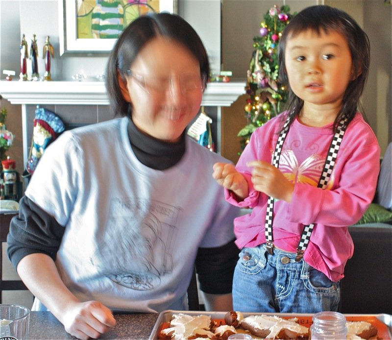 I LOVE your poem! Now can you come over on my bloggie and write me one that rocks just as much? Teehee. So many pictures and so many beautiful memories created on this day. Thanks to you, my children will always have these wonderful memories as their first time making Christmas cookies. This will surely be a tradition in our family from now on, and definitely with your delicious gingerbread and icing recipes. These were seriously THE BEST gingerbread men I’ve ever tasted. I cannot thank you enough for your kindness and generosity in creating such a fun and magical day for my kiddies. Watching the smiles on their faces and hearing their laughter melted my heart. Gary and I had a great time as well. It was so wonderful to meet Kevin’s daughter, and always a pleasure to see you and Kevin again. Miss E is just too adorable! She’s definitely one who’s wise beyond her years! Thank you again for having us over. The photos really do tell all. Great times, great times!