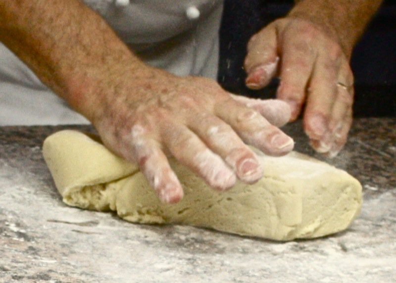 So, let’s revisit my lesson at Le Cordon Bleu in July of 2010. Chef Walters had saved some dough from a previous class and had it brought out of the fridge at the end of the day when we were asking questions. We were small and efficient class, so had some extra time. Lucky us!