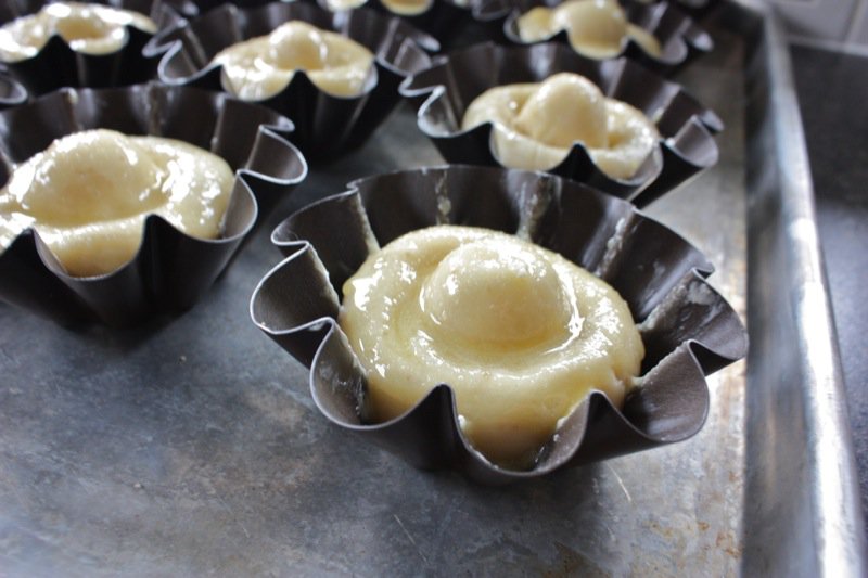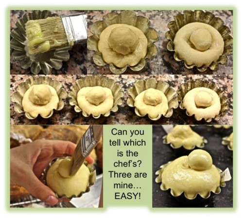 Everything in the TM bowl, the dough was fantastic to work with; the hardest part was ensuring the little head on top was done properly and would sit straight up. No guarantees… they are all in my little pans purchased from Dehillerin in Paris. Rising, for the second time, in their cute little shapes. and voilà ! They still look perfect and are ready for the oven!