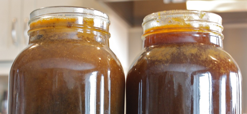 Pour into sterilized jar through funnel; seal and refrigerate until ready to use!