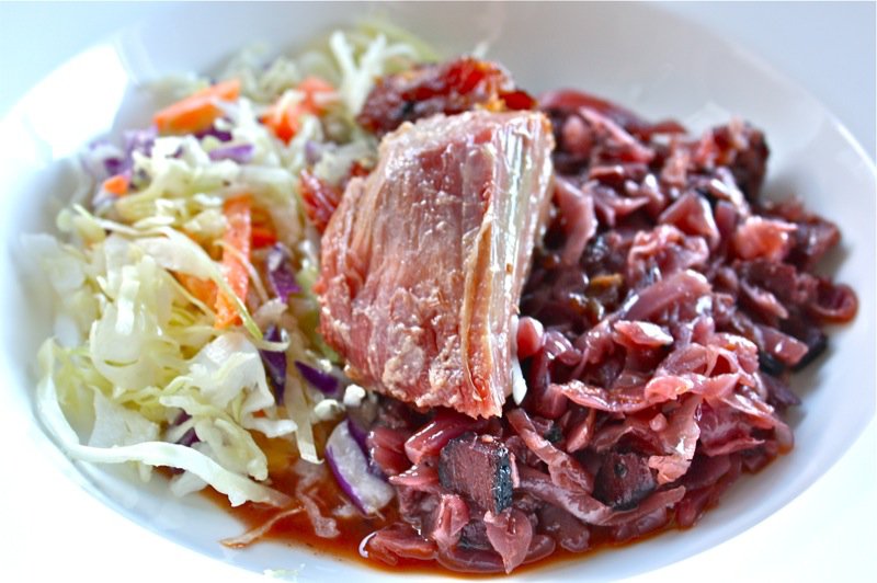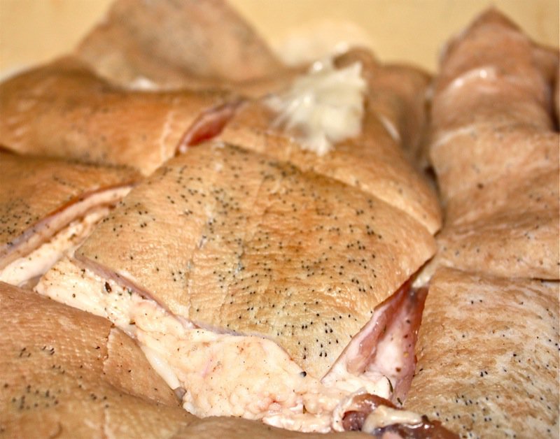 No. It took my second experience eating it. I had it again for dinner at Kevin Kossowan’s house and though everyone knows I don’t eat meat, I ate the meat on my plate that night. Unforgettable. Later, I learned that he didn’t cure it at all. He just “threw it in the oven with some rendered pork fat and baked it low and slow”. It was every bit as delicious as this one was.
