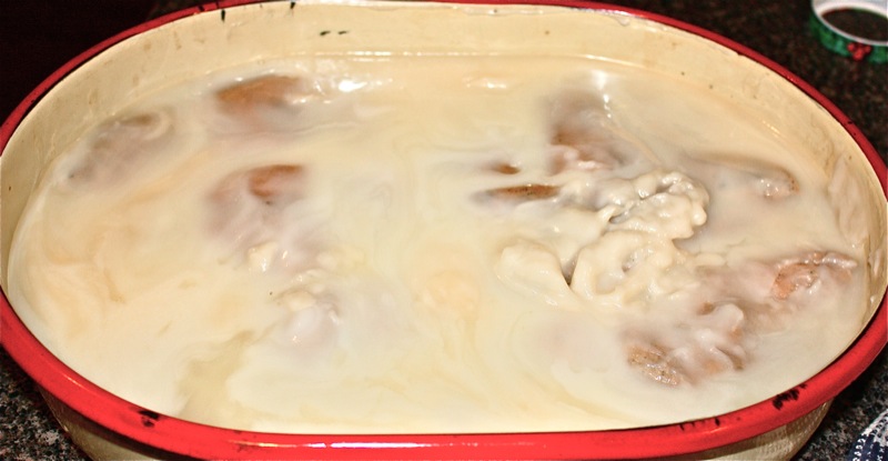 I covered the bottom of the roaster with a generous layer of home rendered lard. I decided to cut the halves into nine squares each as I felt that would make the pieces easier to plate when the time came. I only cut the skin. I didn’t cut through the meat. I completely covered the pork belly with the lard (bottom, right).