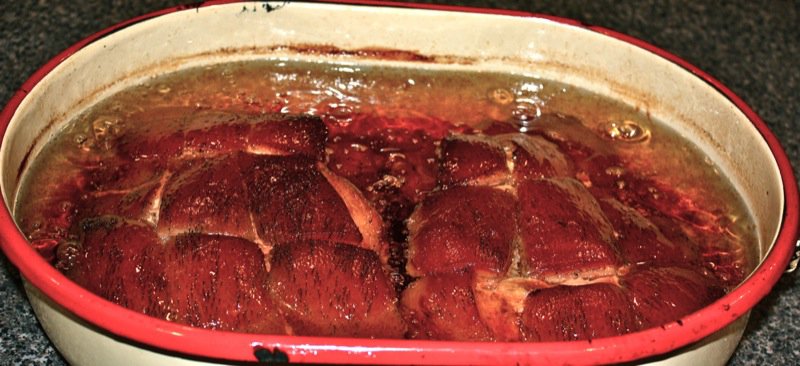 The pork belly was “well shaven”, but the black hairs still visible. I didn’t let it bother me as I wasn’t planning on eating the skin and knew that it would be cooked for so long, that all would be fine and not a hair was visible when the little belly was finished cooking. Interesting question, though!!