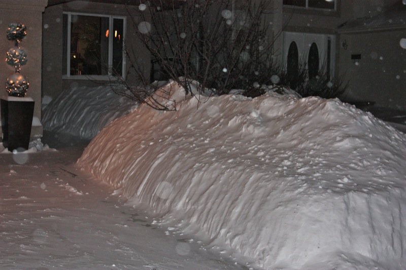 You can see how treacherous our roads must have been the evening before with the snow blustering all over. Certainly, there was no place to park, and there is still barely a trail to get in and out of the neighbourhood on.